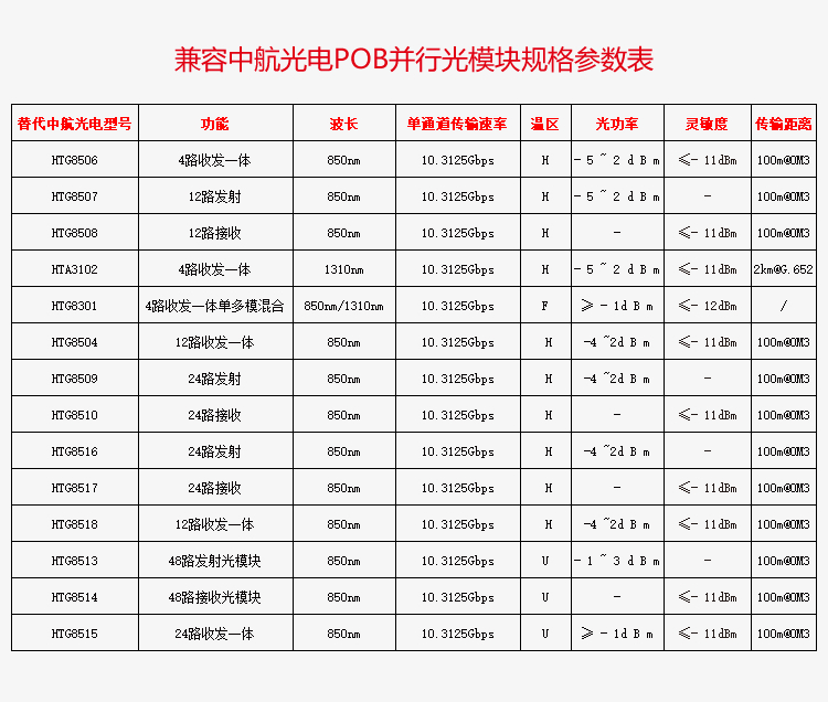 单通道最高速率10.3125Gbps,波长850nm
