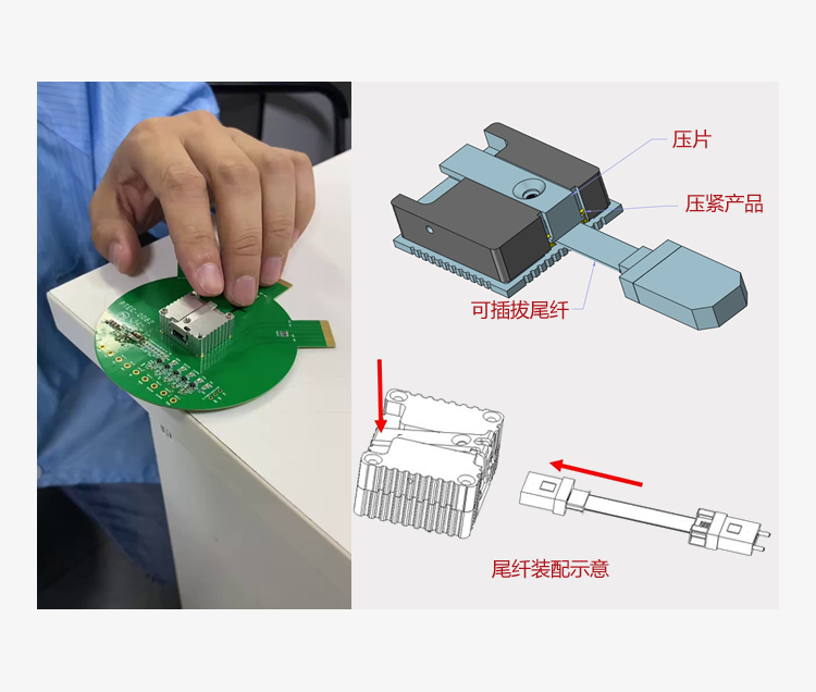 青龙架构的一体化结构取消了光纤跳线。在这种结构中,设备内部不再有光纤互连,降低了设备内部设计复杂度,优化了内部工艺, 提升了传输可靠性,提供了设备光纤传输距离光信号直接从光模块通过内部的光适配器件等传输至航插接口,减少了中间连接环节,避免了因光纤跳线插拔造成的损耗和不稳定.相对原来传统方案节省了30%~50%的内部空间。同时,该设计使内部光通路相对固定,降低了因外界振动、冲击等因素导致光信号传输中断或受干扰的风险,能够更好地适应复杂恶劣的使用环境.